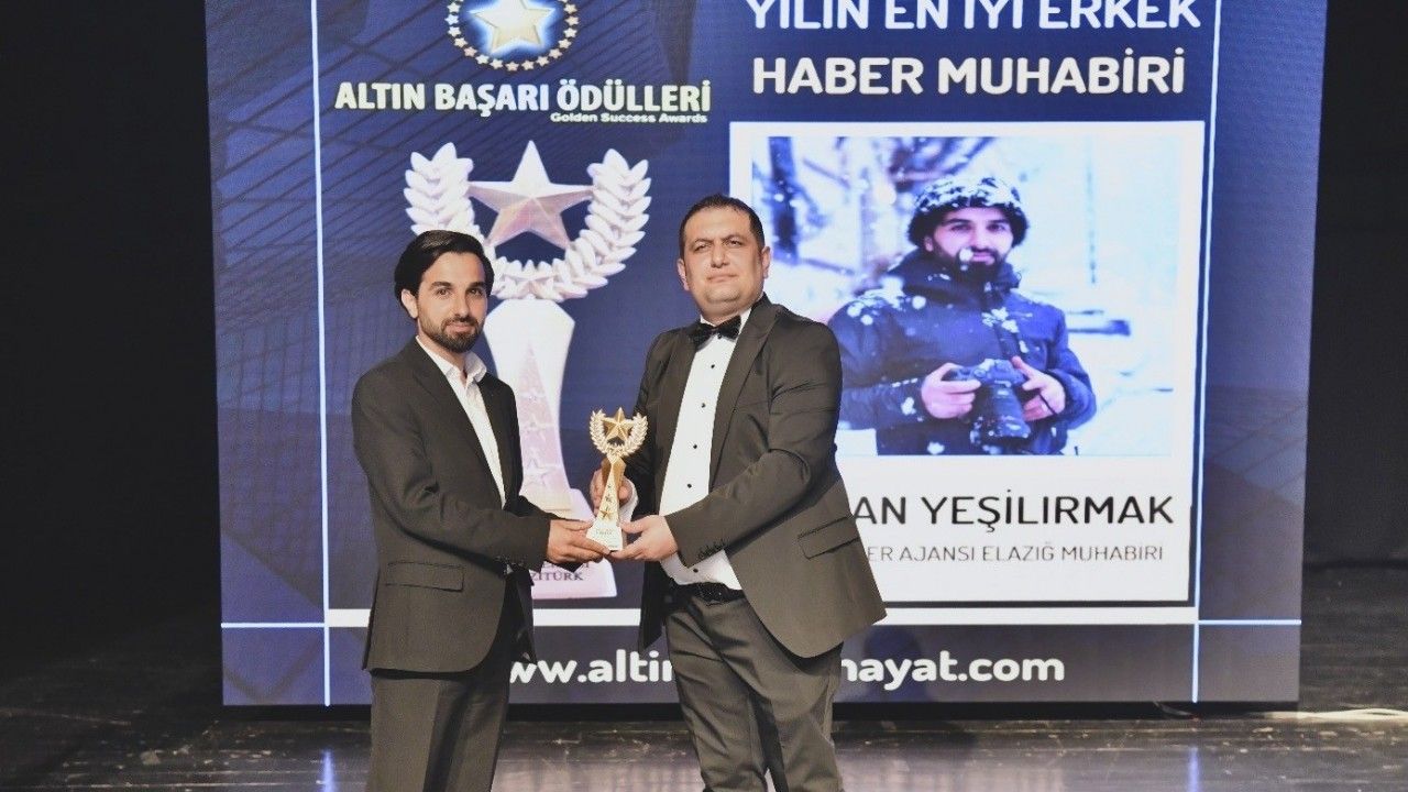 İhlas Haber Ajansı (İHA) Elazığ muhabiri Rıdvan Yeşilırmak, Malatya’da düzenlenen Altın Başarı ödül töreninde "Yılın En İyi Erkek Haber Muhabiri" ödülüne layık görüldü.