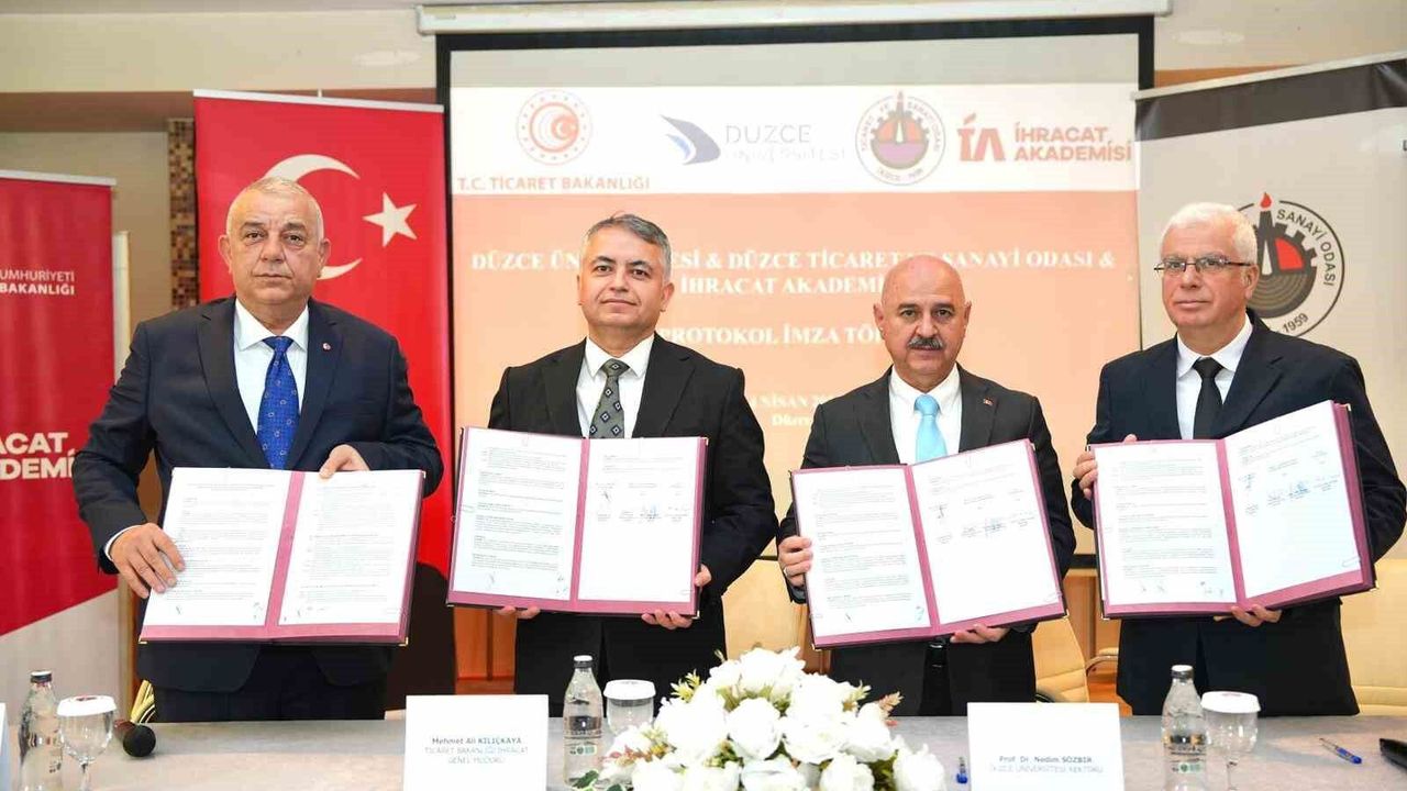 Düzce'nin ihracat kapasitesini artırmak amacıyla, Düzce Üniversitesi, İhracat Akademisi Eğitim Hizmetleri ile Düzce Ticaret ve Sanayi Odası arasında 'İhracat Akademisi Protokolü' imzalandı.