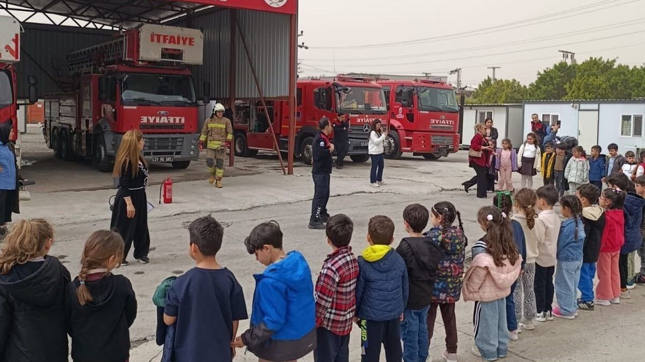 İskenderun'da bulunan itfaiye istasyonunu ziyaret eden Hürriyet İlkokulu öğrencileri, Hatay Büyükşehir Belediyesi İtfaiye Dairesi Başkanlığı ekipleriyle bir araya geldi. Ziyaret kapsamında öğrencilere itfaiyenin görevleri, yangınlara müdahale yöntemleri ve acil durumlarda yapılması gerekenler hakkında bilgi verildi.