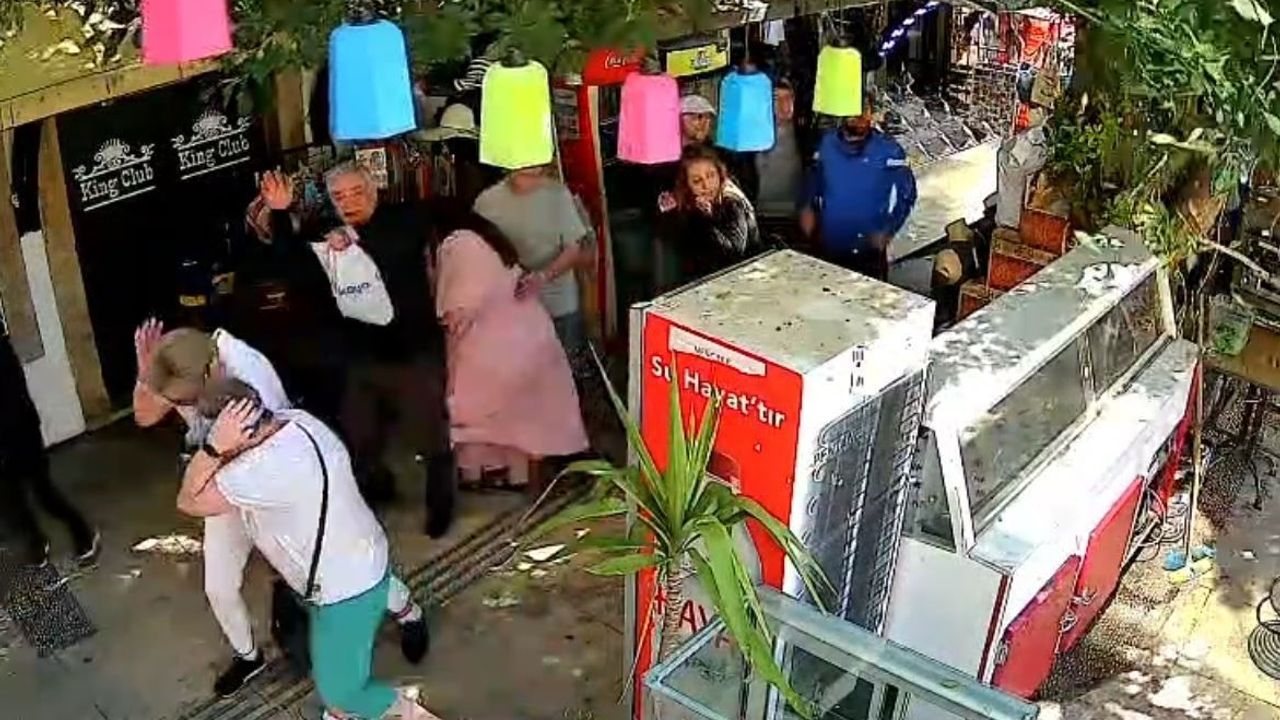 Öte yandan demirin düştüğü sırada ağaca verdiği zarar ve çıkardığı sesle turistlerin korku dolu anlar yaşadığı görüntüler, işyerinin güvenlik kamerasına yansıdı. Çocukların da yer aldığı yaklaşık 15 kişilik turist bir gurup, düşen demir sonrası bulundukları yerden uzaklaşması da görüntülere yansıdı.