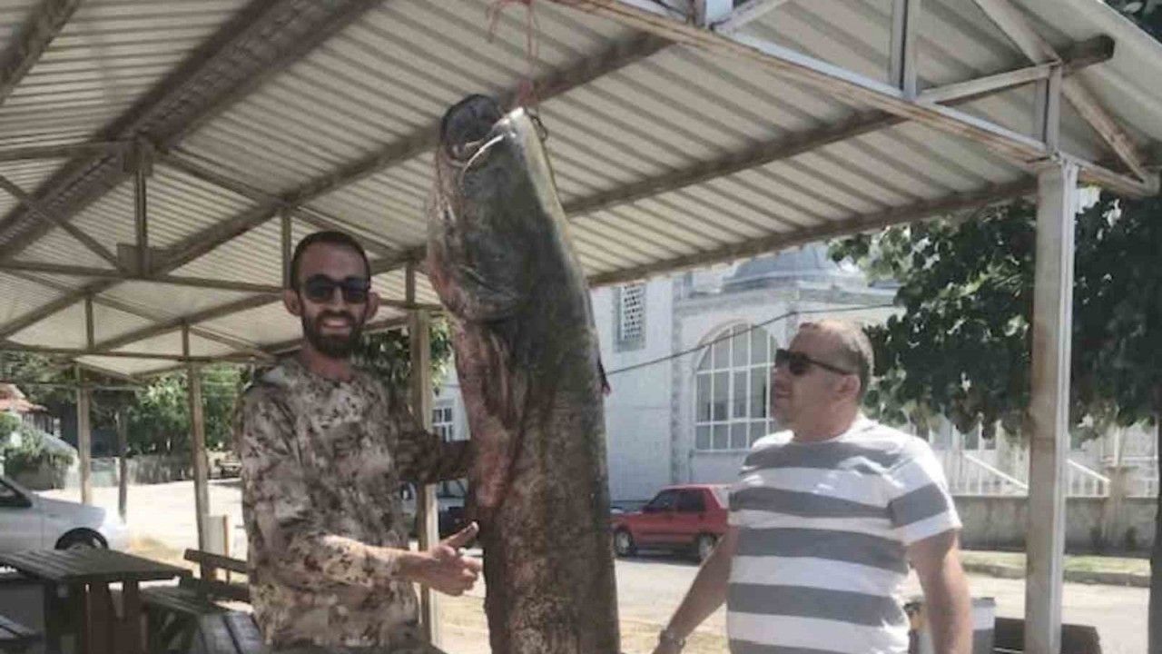 Edirne’nin İpsala ilçesinde balık tutmak için Meriç Nehri’ne çıkan Recai Ateş’in ağına 2 metre boyunda 80 kilo ağırlığında yayın balığı takıldı.