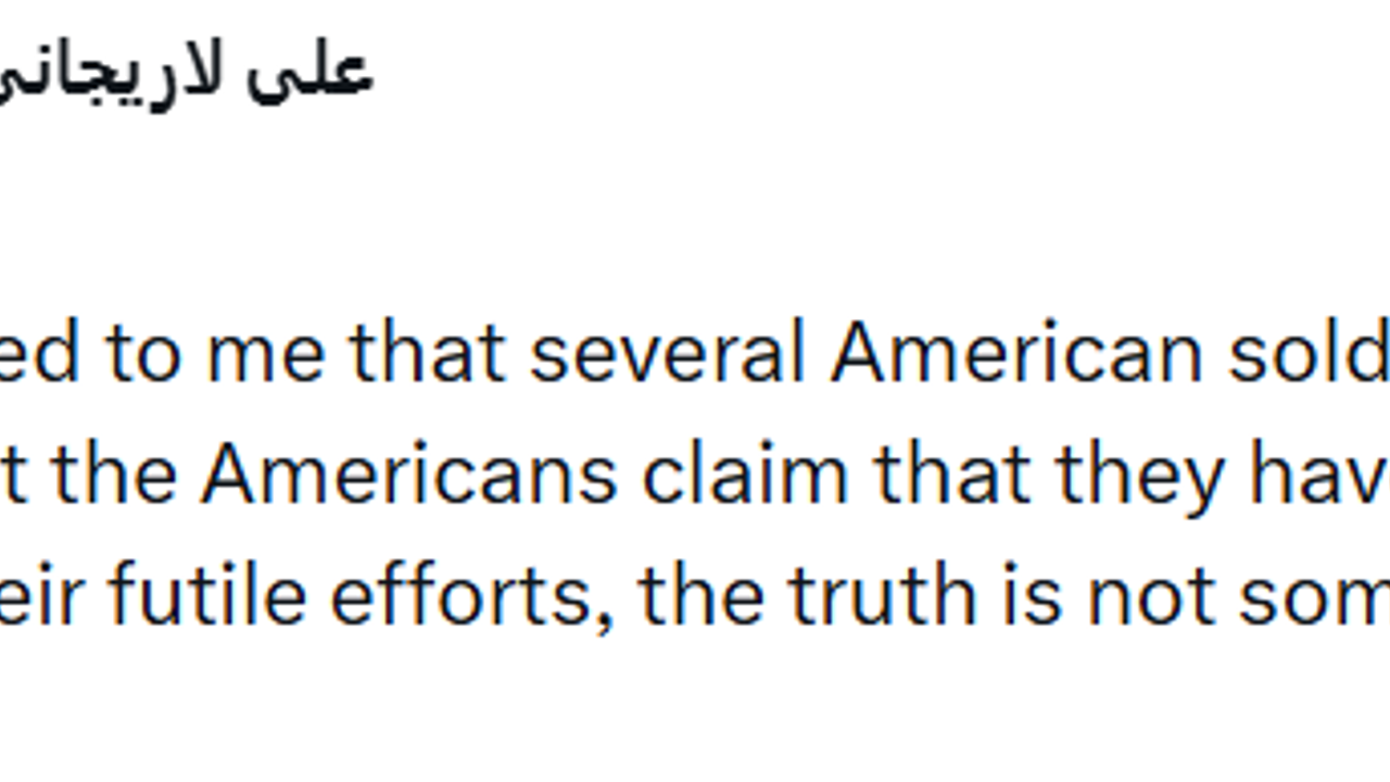 İran Ulusal Güvenlik Yüksek Konseyi Genel Sekreteri Ali Laricani, birkaç ABD askerinin esir alındığı yönünde bilgilendirildiğini belirterek, 'Ancak Amerikalılar, bu askerlerin çatışmada öldürüldüğünü iddia ediyor. Nafile çabalarına rağmen, gerçeği çok uzun süre saklayamazlar' açıklamasında bulundu. ABD Merkez Komutanlığı (CENTCOM), söz konusu iddiayı yalanladı.
