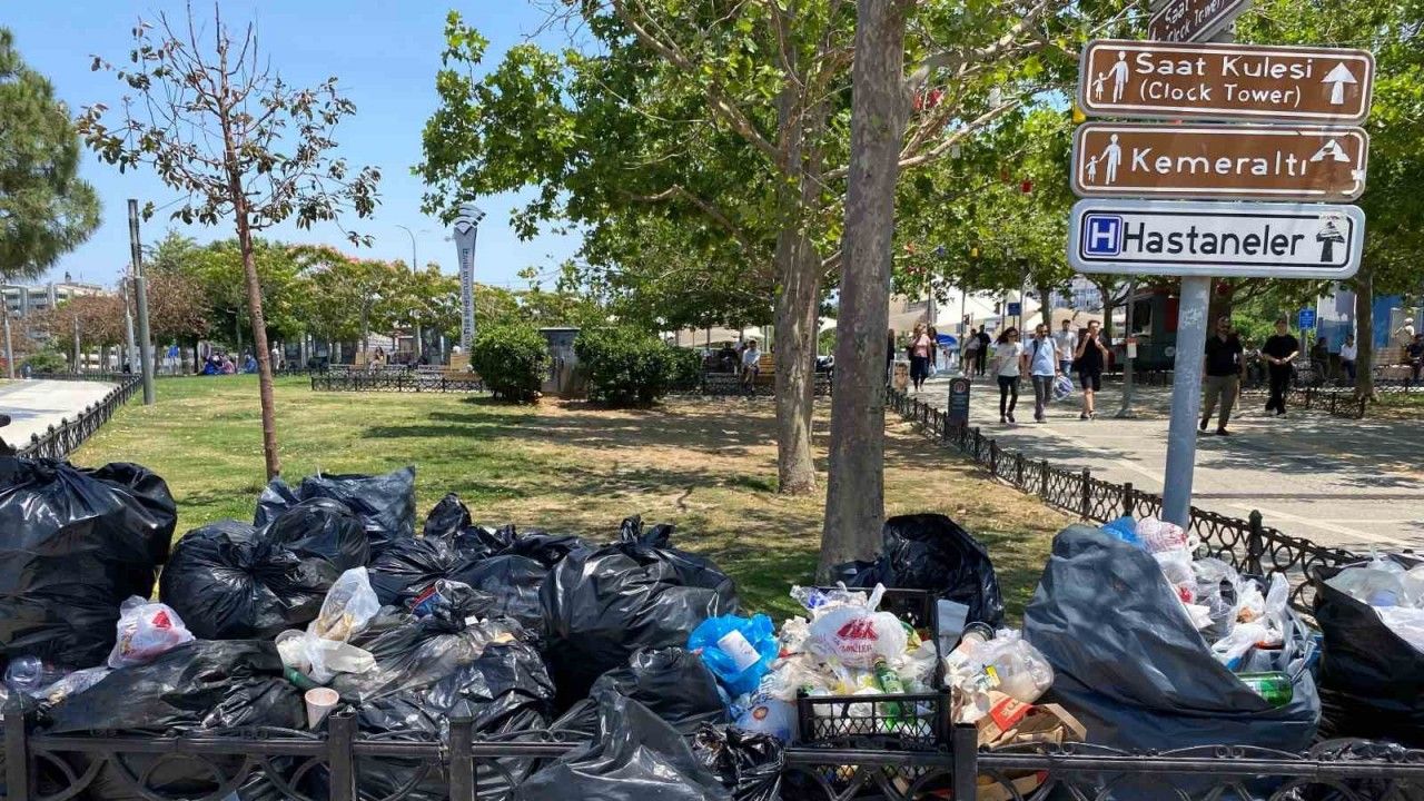 Önceki gece Alsancak, Kıbrıs Şehitleri Caddesi ve Kordon’da çöpler yollara taşmış, İzmir Büyükşehir Belediye Başkanı Cemil Tugay, sahaya inerek eldivenleri takıp esnafla birlikte çöp toplamıştı. Geçici çözümlere ve alınan tedbirlere rağmen, kentin bir çok yerinde çöpler birikmeye devam ediyor. Yerli ve yabancı turistlerin uğrak noktası Konak İskele bölgesinde, yeşil alana gelişi güzel atılmış çöp poşetleri yoldan geçenleri rahatsız ediyor. Çöpler koku ve görüntüleriyle çevre kirliği oluşturuyor. Çirkin manzaraya tepki gösteren vatandaşlar, bir an önce tarafların anlaşmaya varmasını bekliyor.