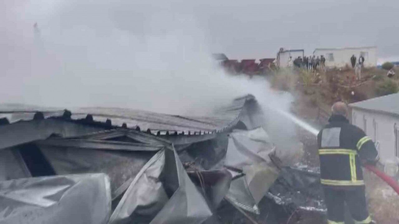 Hatay’ın Antakya ilçesinde işçilerin kaldığı konteyner yatakhane, alevlere teslim olarak kullanılamaz hale geldi.