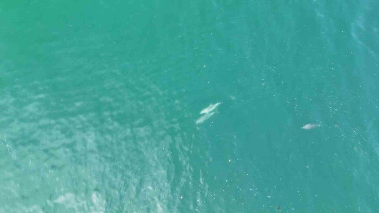 İstanbul’da tarihi Yarımada açıklarında insanlara yakınlıkları ile bilinen yunuslar havadan görüntülendi. Havanın ısınmasıyla ortaya çıkan yunuslar görenleri kendine hayran bıraktı.