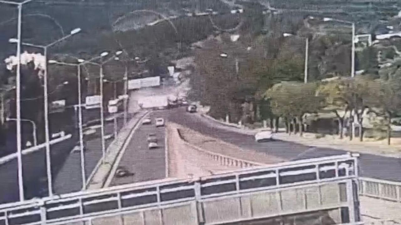 İzmir'in Bornova ilçesinde 1 polis memurunun şehit düştüğü, 2 kişinin hayatını kaybettiği ve 10 aracın birbirine girdiği kazanın güvenlik kamerası görüntüleri ortaya çıktı. Görüntülerde, kontrolden çıkan tırın refüjü aşarak karşı yönden gelen araçları önüne katıp sürüklediği dehşet anları yer aldı.