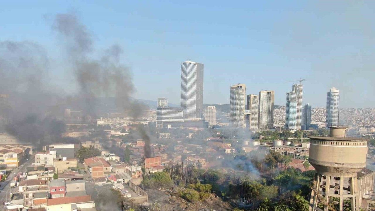 İzmir’in Konak ilçesinde boş arazide çıkan ve rüzgarın etkisiyle mahalleye sıçrayan yangın, itfaiye ekiplerinin müdahalesiyle kontrol altına alındı. Yangında, 4 binanın çatısı alevlere teslim oldu, 2 tır kullanılamaz hale geldi.