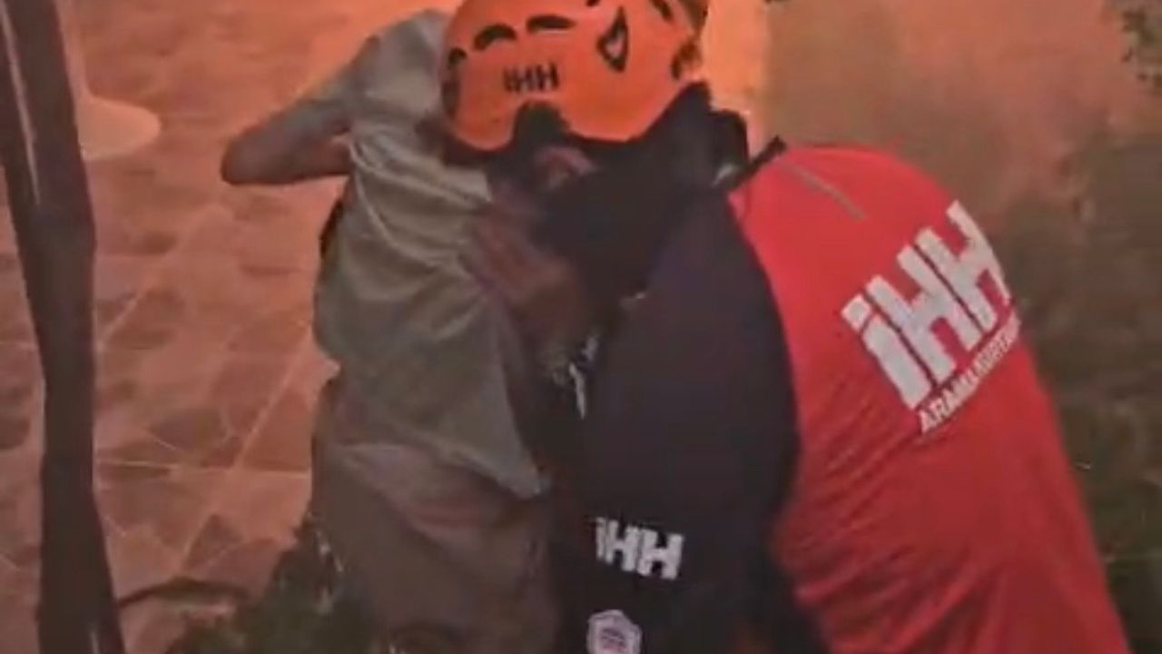 Öte yandan günün kararmasıyla alevler daha da net bir şekilde görülürken, Seferihisar ilçesine bağlı bir çok yerleşim yerinde alevler evlere kadar ulaştı. Tekerlekli sandalyedeki yaşlı adam ekipler tarafından kurtarıldı. Yine evinde kedisi ile birlikte mahsur kaldığı öğrenilen bir vatandaş da ekipler tarafından kurtarırken sonrasında duygu dolu anlar yaşandı.