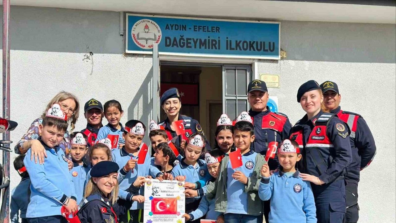 Aydın’da jandarma ekipleri ilkokul öğrencileri ile bir araya gelerek İstiklal Marşı’nın kabulünün 104. yılı kutlandı.