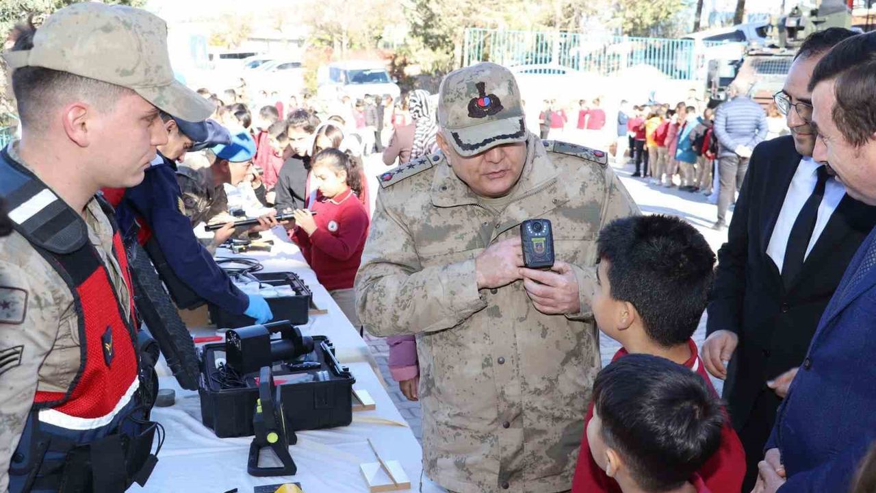 Kilis'te jandarma ekipleri, öğrencilerle bir araya gelerek yerli ve milli savunma sanayiinde kullanılan araç ve gereçleri tanıttı, yerli üretimin önemine dikkat çekti.