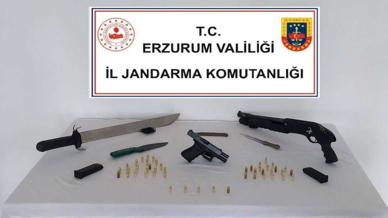 Erzurum İl Jandarma Komutanlığı Kaçakçılık ve Organize Suçlarla Mücadele Şube Müdürlüğü koordinesinde; Horasan ilçesinde gerçekleştirilen operasyonda 1 şahsa ait ev ve iş yerinde yapılan aramada; 1 adet ruhsatsız tabanca, 1 adet ruhsatsız av tüfeği, 2 adet tabanca şarjörü, 47 adet 9 mm fişek, 1 adet kama bıçak, 1 adet bıçak, 1 adet kılıç ele geçirildi. Olay şüphelisi 1 şahıs hakkında, Cumhuriyet Savcısı’nın talimatıyla adli işlemler başlatıldı.