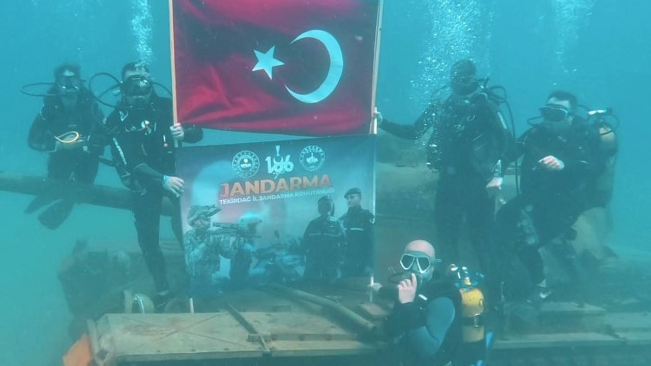 Jandarma teşkilatının 186. kuruluş yıldönümü, Saros Körfezi’nde Tekirdağ İl Jandarma Komutanlığı ekipleri tarafından, Gökçetepe köyü sahili açıklarında batırılan tanka yapılan dalış ile kutlandı.