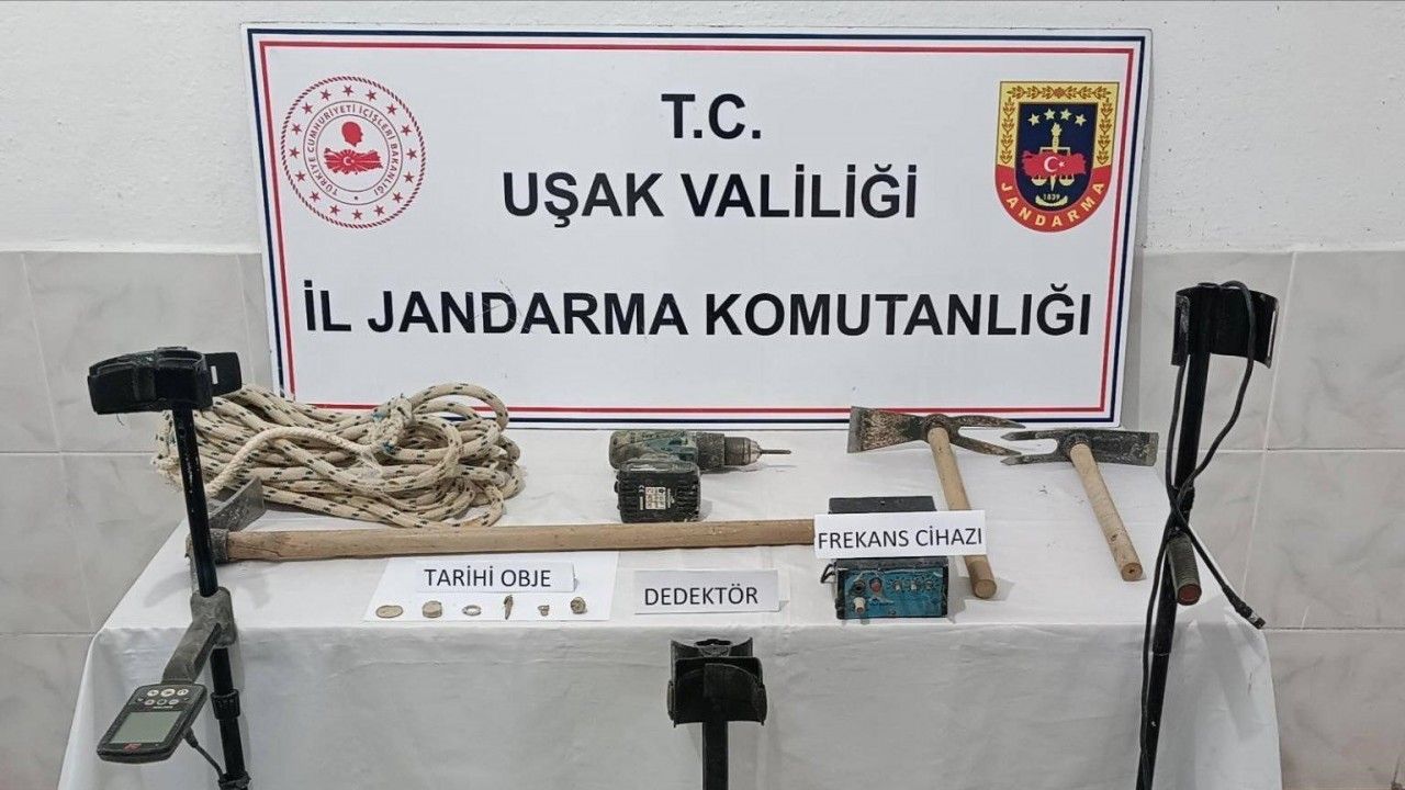 Uşak İl Jandarma Komutanlığı ekipleri, kaçak kazı olaylarını önlemeye yönelik yürüttükleri çalışmalar kapsamında Karahallı ilçesinde M.K. (51), A.Ç. (44) ve F.Ö. (45) isimli şüphelileri izinsiz kazı yaptıkları sırada suçüstü yakaladı.