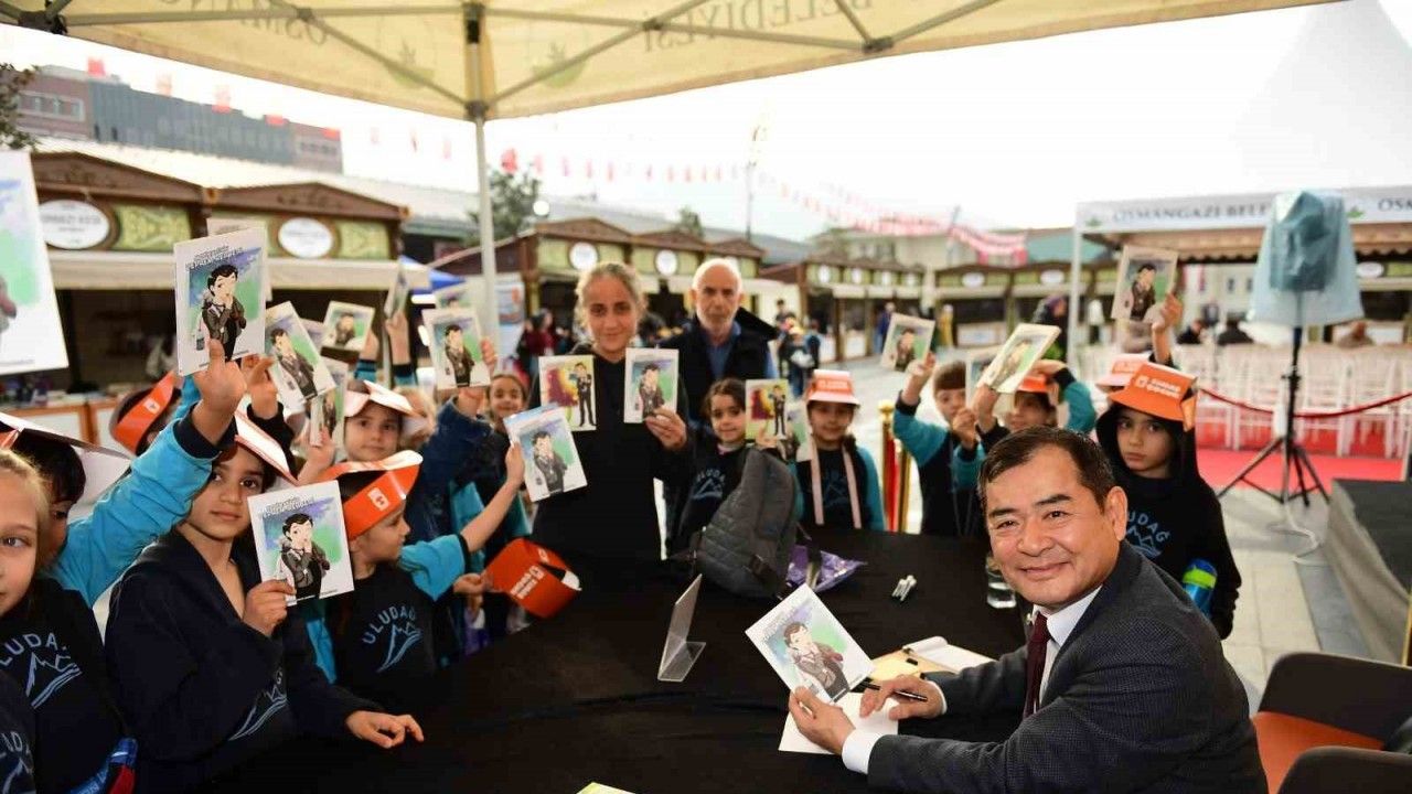 Konuşmaların ardından Yoshinori, kendisini dinlemeye gelen çocuklara kitaplarını imzalayarak hediye verdi. Bunun yanı sıra Osmangazi Belediye Başkan Yardımcısı Mutlu Esendemir ve Osmangazi Belediye Meclis Üyesi Özlem Bodur, hayat kurtaran bilgiler aktaran Japon deprem uzmanına teşekkür plaketi takdim etti.