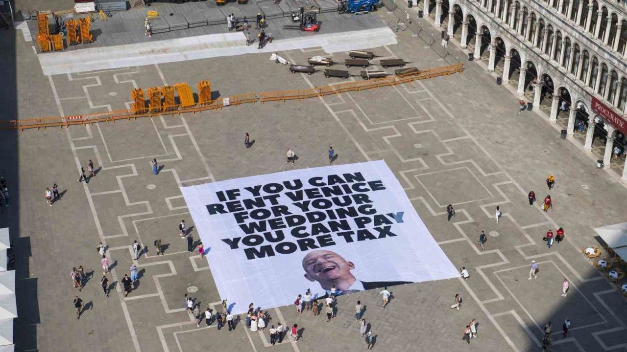 Forbes dergisinin dünyanın en zenginleri listesinde 4. sırada yer alan 61 yaşındaki Bezos, 25 yıllık eşi MacKenzie Scott ile evliliğinin sona ermesinden 4 yıl sonra 2023 yılında 55 yaşındaki Lauren Sanchez ile nişanlanmıştı. Çiftin düğünlerinin Venedik’te yapacaklarının duyulmasının ardından kent sakinleri, üç gün sürecek düğünün günlük yaşamda aksamaya yol açabileceğini belirtmişti. Protestocular, 13 Haziran’da Venedik’teki Rialto Köprüsü’nde "Bezos’a yer yok" yazılı bir pankart açmıştı. Çevreci sivil toplum kuruluşu Greenpeace ise pazartesi günü San Marco Meydanı’nda Bezos’un bir fotoğrafının yer aldığı ve "Düğününüz için Venedik’i kiralayabiliyorsanız daha fazla vergi ödeyebilirsiniz" yazılı dev bir pankart açmıştı. Dün düğün yerinin güvenlik endişeleri nedeniyle şehrin daha izole ve ulaşımı zor bir bölgesine taşındığı öğrenilmişti.