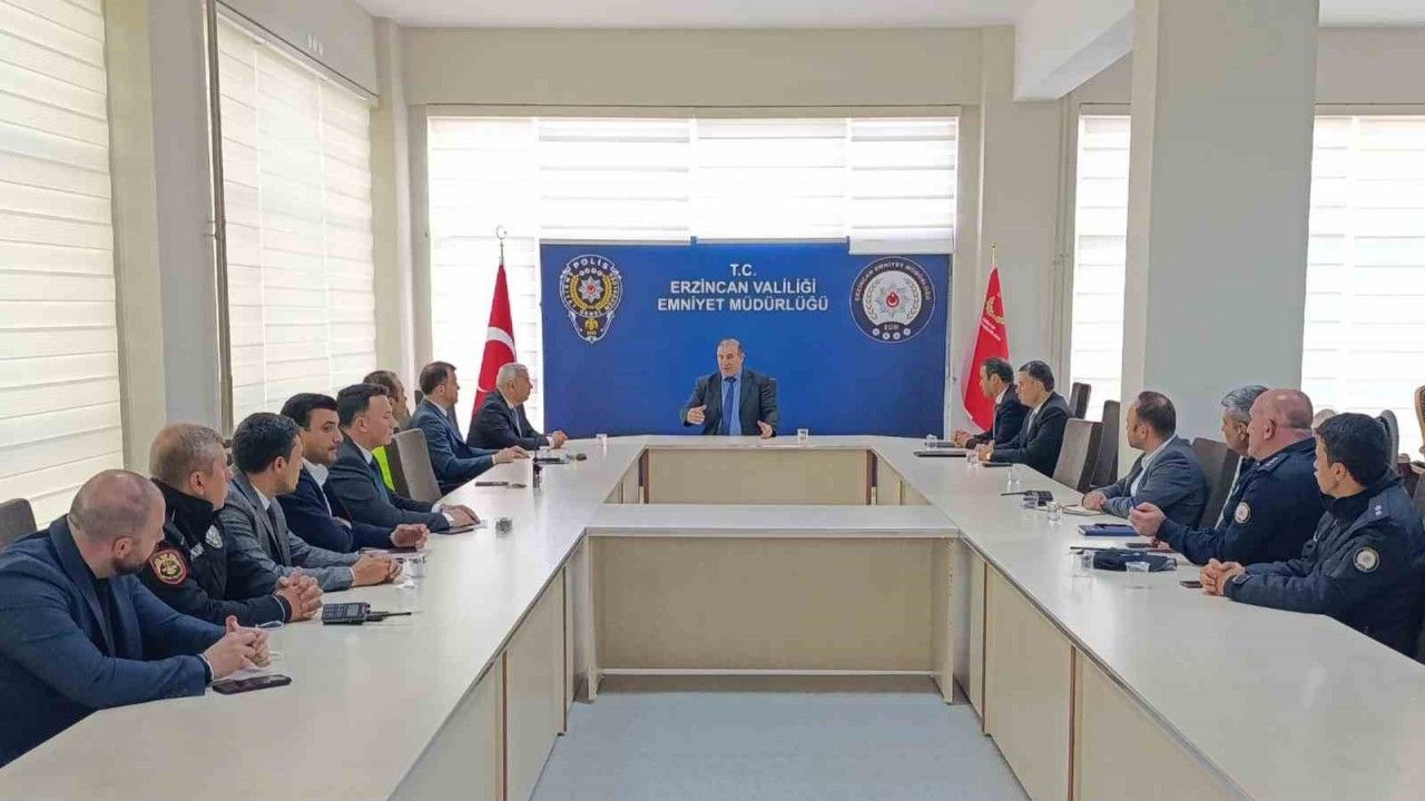 İl Polis Başmüfettişleri 1. Sınıf Emniyet Müdürü İskender İrtürk ve 1. Sınıf Emniyet Müdürü Fahrettin Akdeniz tarafından düzenlenen toplantıya Asayiş ve Özel Güvenlik Şubeden sorumlu İl Emniyet Müdür Yardımcıları, Özel Güvenlik, Asayiş, TEM, KOM, Güvenlik, Trafik Tescil ve Denetleme, Narkotik ve Spor Güvenliği Şube Müdürleri katıldı.