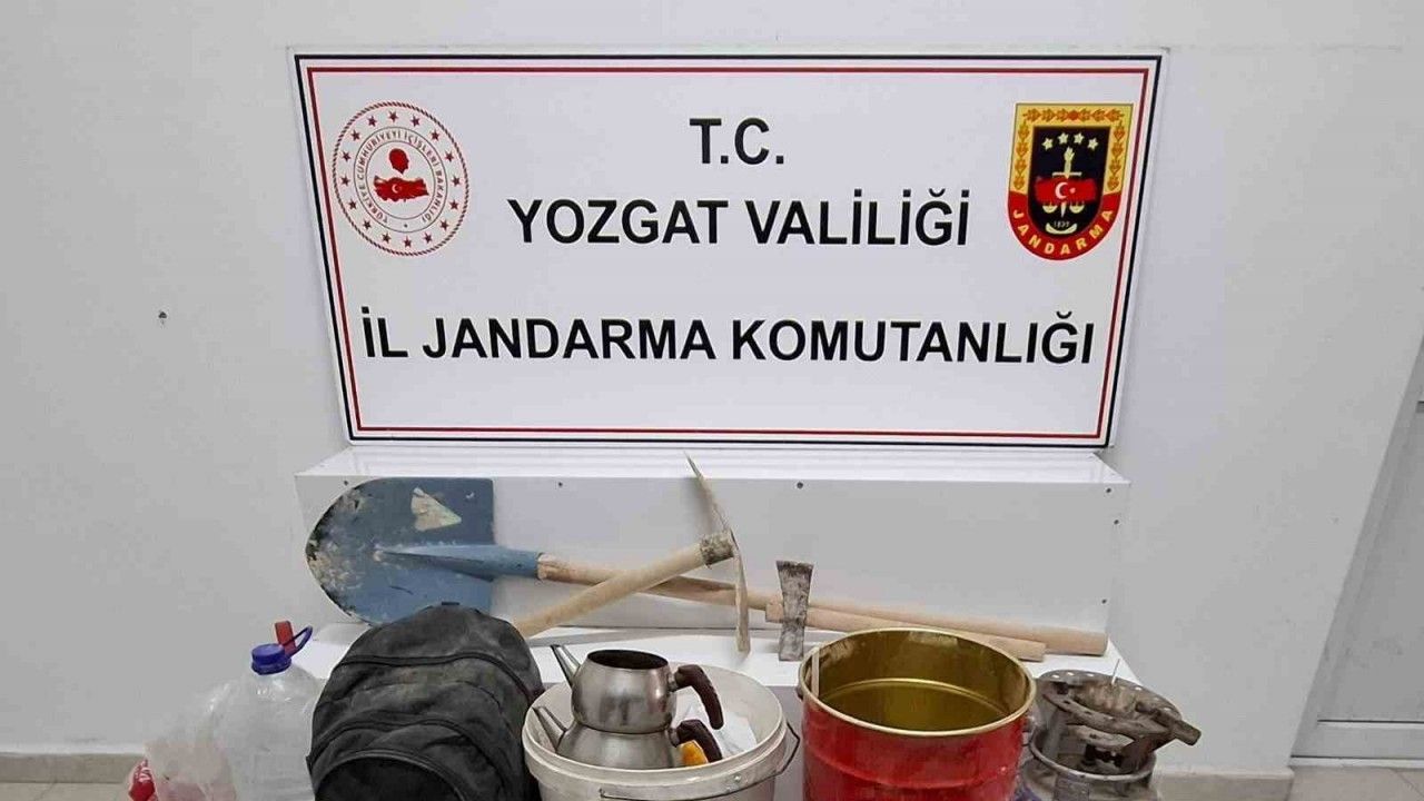 Yozgat’ta kaçak kazı yapanlar defineciler ihbar üzerine suçüstü yakalandı.