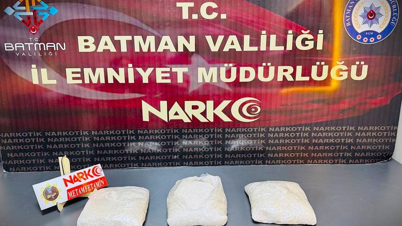 Batman’da uyuşturucu ile mücadele çalışmaları sürüyor. Çalışmalar kapsamında alınan ihbarı değerlendiren Batman Emniyet Müdürlüğü Narkotik Suçlarla Mücadele Şubesi ekiplerince şehir girişinde durdurulan şehirler arası otobüste arama yapıldı. Bir kadına ait valizde yapılan aramada 3 kilogram metamfetamin uyuşturucu madde ele geçirildi.
