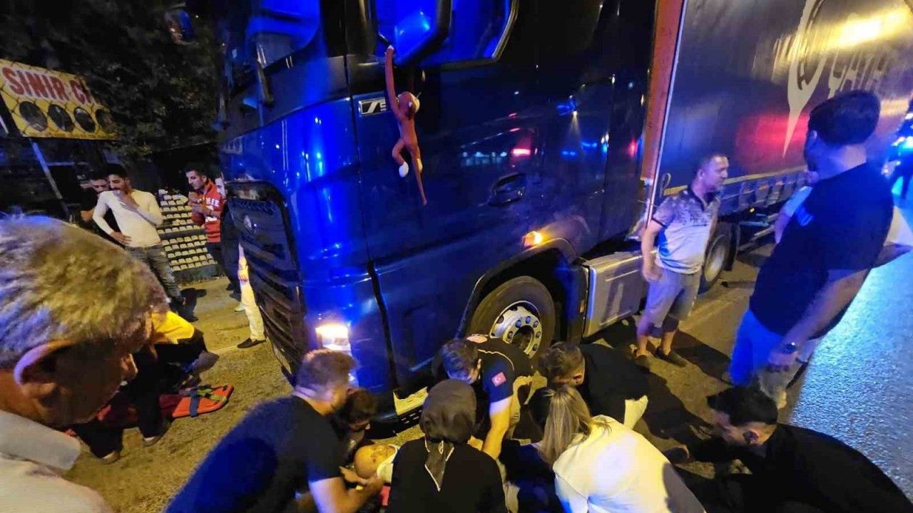 Tırın altına sıkıştı