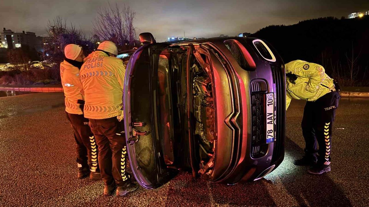 Kaza 100. Yıl Mahallesi 1010 Nolu Sokak'ta meydana geldi. Kimliği belirlenemeyen sürücü idaresindeki 78 AAV 106 plakalı hafif ticari araç Safranbolu istikametine seyir halindeyken kaldırıma çarpıp yaklaşık 50 metre ilerledikten sonra devrildi. Kazada araçta bulunan Ezgi Ç. yaralandı. İhbar üzerine olay yerine polis, itfaiye ve 112 Acil Servis ekipleri sevk edildi. Araçta sıkışan yaralı diğer sürücülerin yardımıyla çıkarılırken sağlık ekiplerinin ilk müdahalesinin ardından hastaneye kaldırıldı.