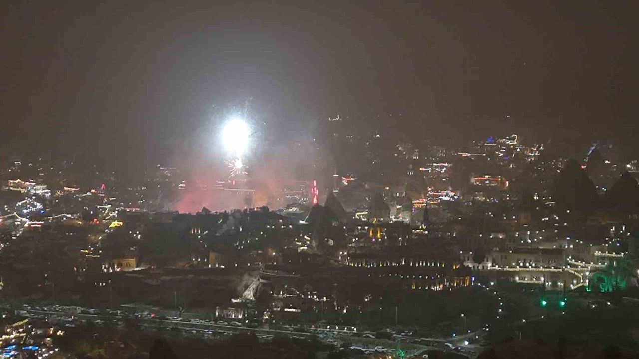 UNESCO Dünya Doğal ve Kültür Mirası Listesi'nde yer alan ve her yıl milyonlarca turist ağırlayan Kapadokya, bu yılbaşında da doldu. Bölgeye akın eden yerli ve yabancı turistler, yeni yıla saatler kala eğlence merkezlerine akın etti. Görsel şölen oluşturan havai fişek gösterileri dron ile görüntülendi.