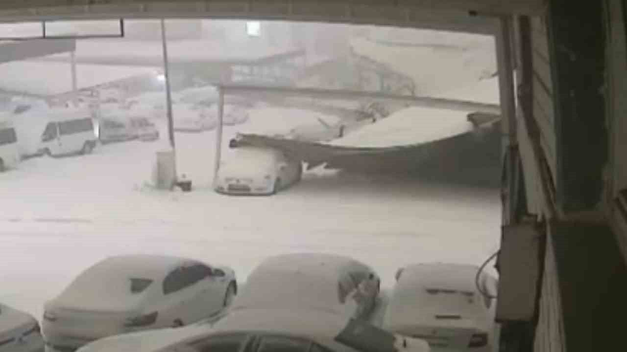 Şanlıurfa'da kar yağışının etkili olmasının ardından birçok bölgede olumsuzluklar yaşandı. Özellikle bazı otoparklarda kar kütleleri ağırlığına dayanamayan birçok sundurma çöktü, araçlar büyük zarar gördü. Bir sundurmanın araçların üzerine çöktüğü anlar güvenlik kamerasına yansıdı.
