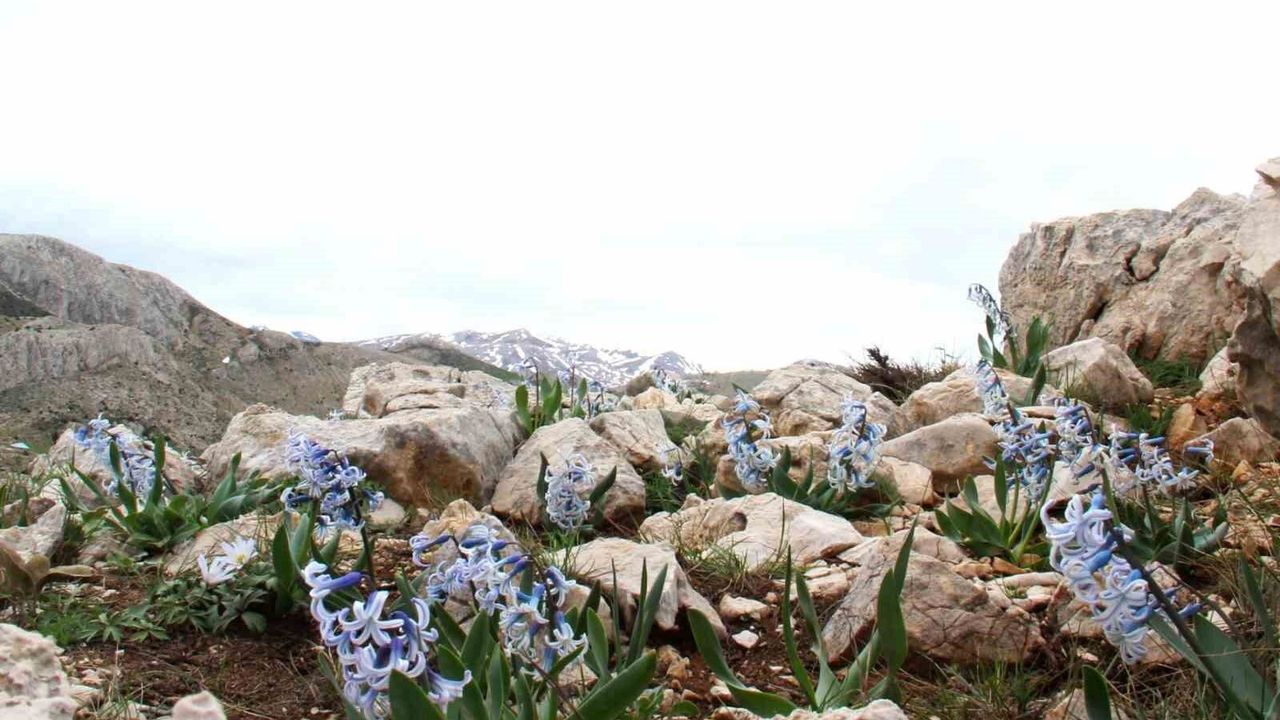 Kahramanmaraş'ın Afşin ilçesinin dağlık bölgelerinde yetişen kaya sümbülü, baharın gelişiyle birlikte görsel şölen sunuyor.