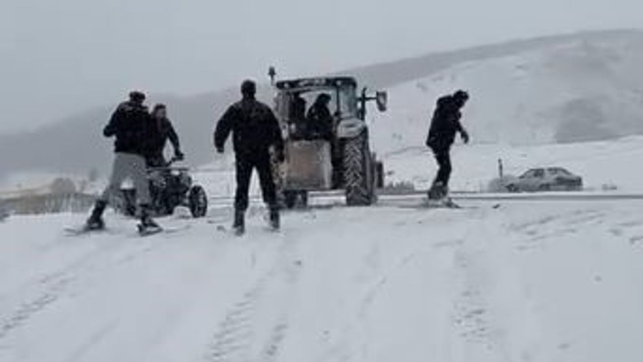 Kar yağışını fırsata çeviren gençler, soğuk havaya aldırış etmeden eğlenceli anlar yaşadı. Yoğun kar yağışının ardından beyaza bürünen bölgede bir araya gelen gençler, traktörün arkasına bağladıkları kayakla kayarak karın keyfini çıkardı.