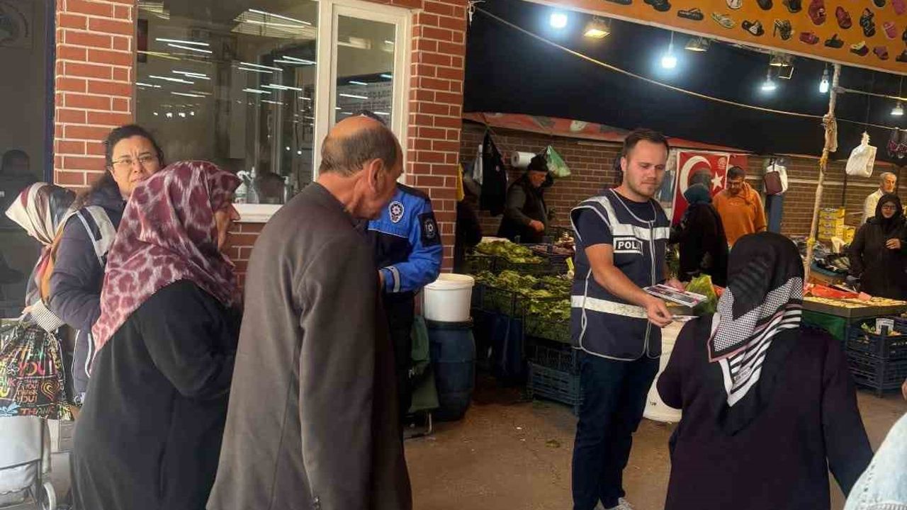 Karacabey İlçe Emniyet Müdürlüğü’ne bağlı Aile İçi ve Kadına Karşı Şiddetle Mücadele Büro Amirliği ile Toplum Destekli Polislik Büro Amirliği ekipleri, Ömer Matlı Kapalı Pazar Yeri’nde vatandaşlara yönelik bilgilendirme çalışması gerçekleştirdi.