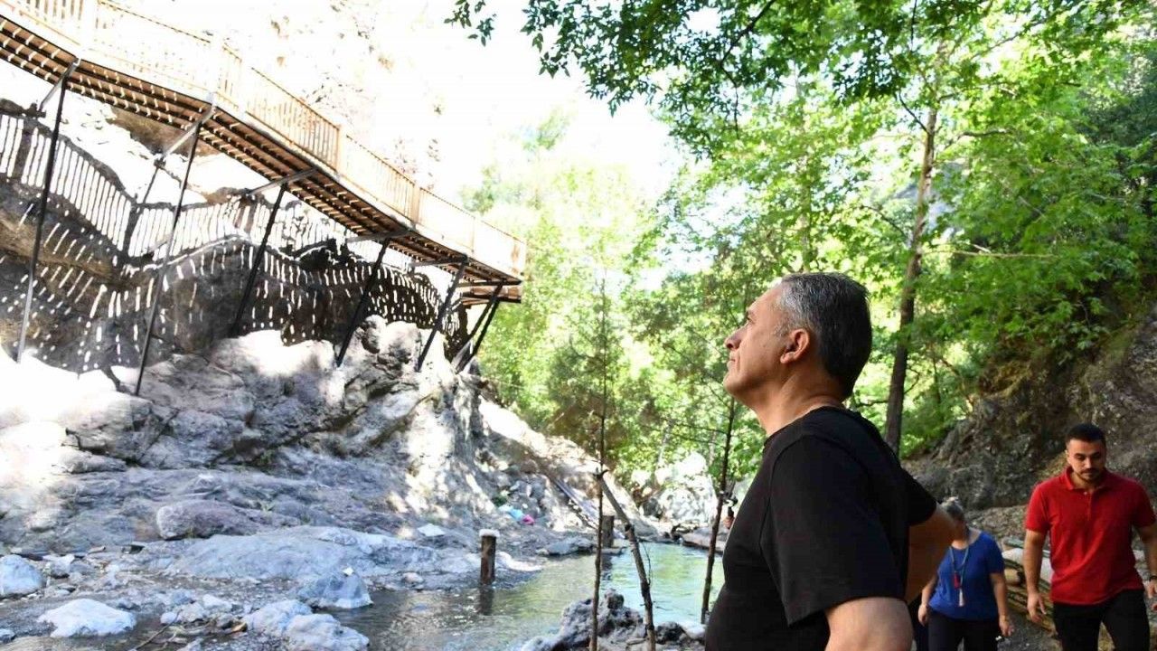 Proje kapsamında 380 metre uzunluğunda ahşap yürüyüş yolu, 2 adet asma köprü ve otopark alanları inşa ediliyor. Belediye Başkanı İbrahim Çenet, Amanos Dağları’nın eşsiz doğasında yapımı süren projeyi yerinde inceledi. Başkan Çenet’e inceleme gezisinde Başkan Yardımcıları Kevser Davarcı ve Sabiha Seda Horuzoğlu da eşlik etti.