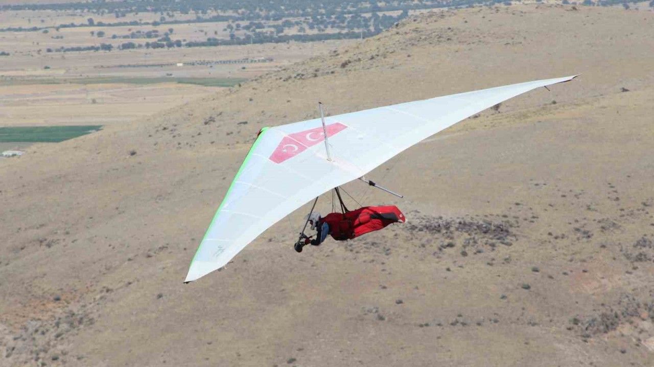 Konya’nın Karapınar ilçesinde bulunan Göktepe bölgesinde Uluslararası Karapınar Yelken Kanat Şampiyonası uçuşları devam ediyor.