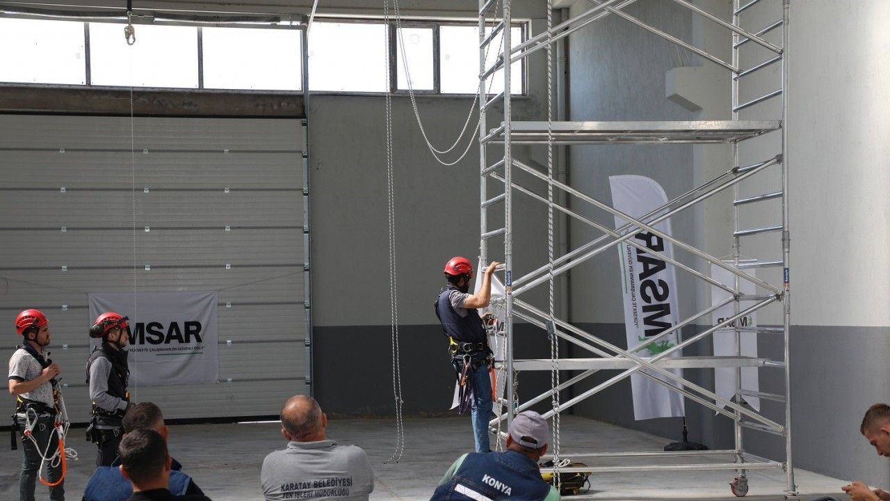 Bu doğrultuda yürütülen çalışmalar kapsamında Karatay Belediyesi tarafından personele yönelik "Yüksekte Çalışma Eğitimi" ile "Güvenli Sürüş Eğitimi" gerçekleştirildi. Temizlik, budama ve teknik ekiplerde görev yapan personele yönelik düzenlenen Yüksekte Çalışma Eğitimi, Eğitmen Gökhan Oğuztürk tarafından verildi. Eğitimde, yüksekte çalışırken iş sağlığı ve güvenliği mevzuatına uygun olarak güvenli bir çalışma ortamının nasıl sağlanacağı detaylı şekilde anlatıldı. Ayrıca; doğru ekipman kullanımı, risk değerlendirmesi ve muhtemel tehlikelere karşı alınması gereken önlemler uygulamalı olarak gösterildi.