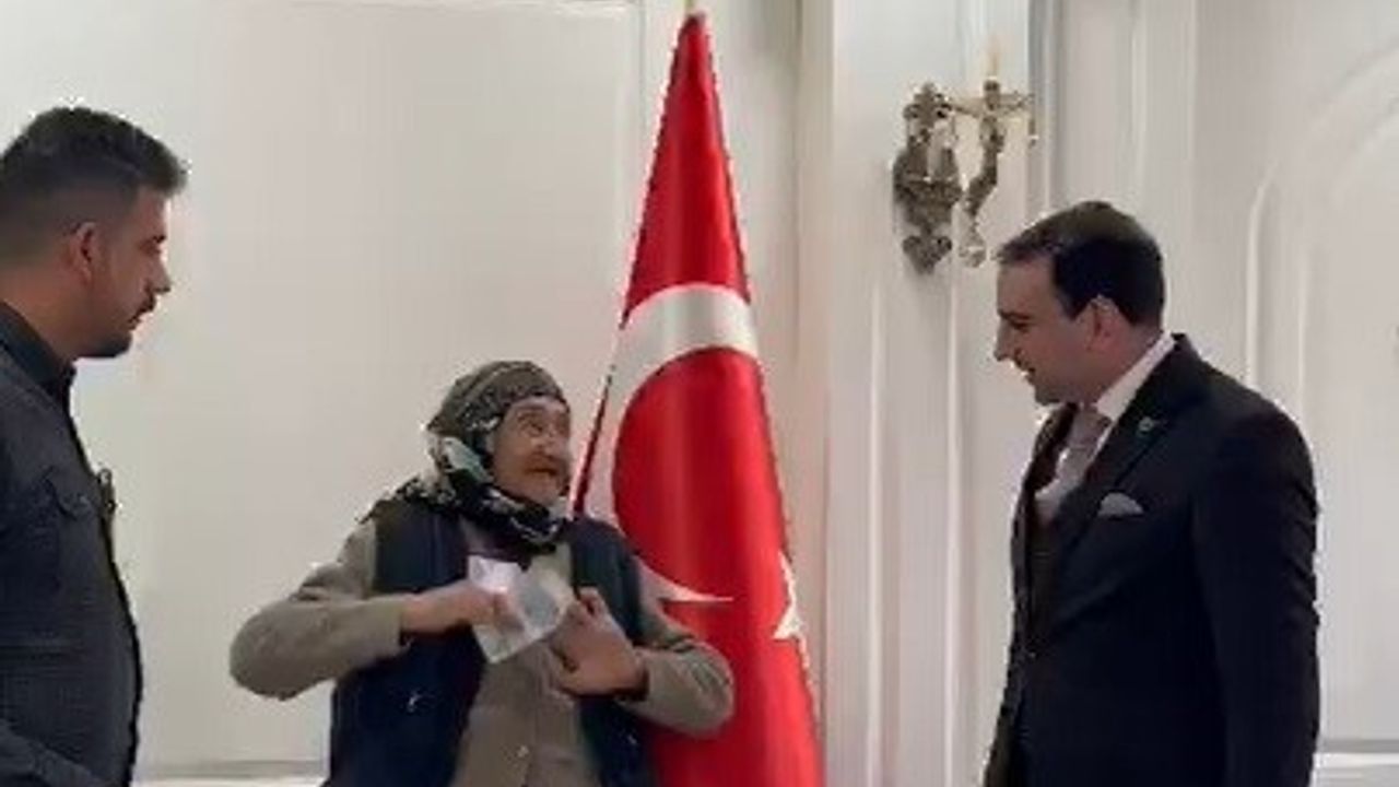 Şerefnaz ninenin örnek davranışı karşısında duygulanan Kaymakam Orhan Gazi Karakaş, nineyi kaymakamlık çalışanlarıyla birlikte bankaya yönlendirdi.