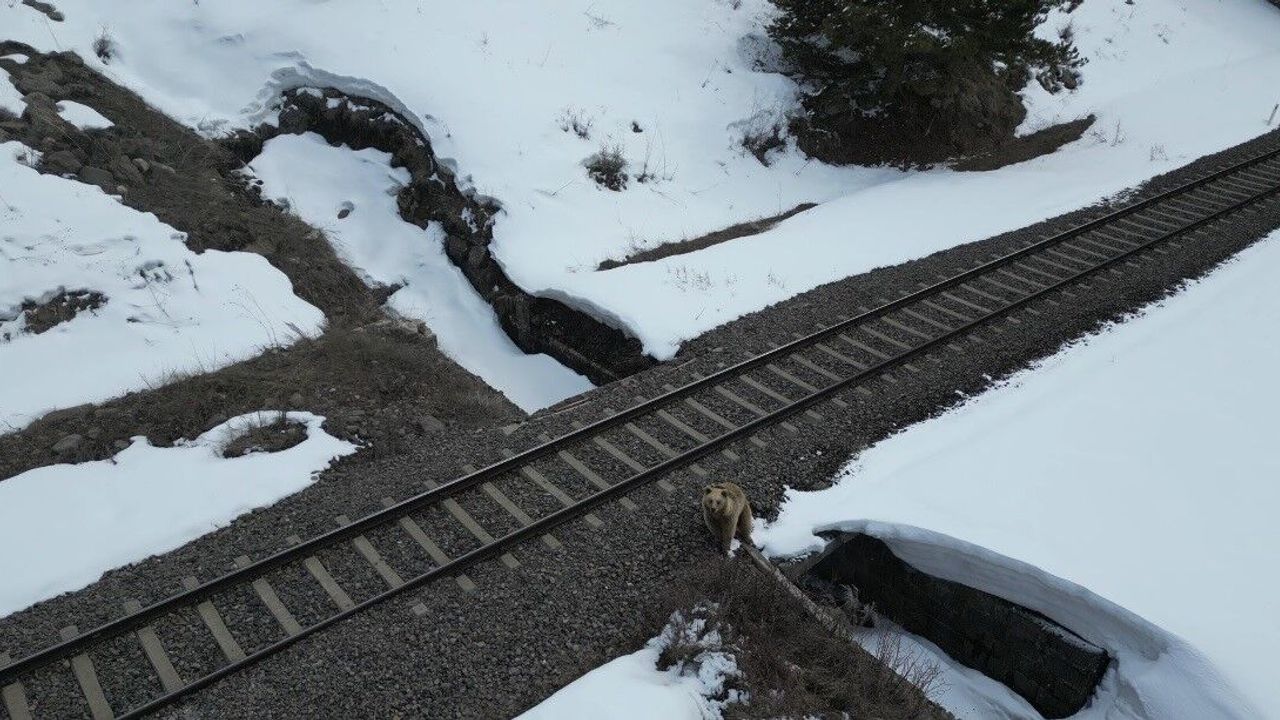 Kars'ta yiyecek arayışına çıkan bir boz ayı, havada süzülen dron ile karşılaşınca ilginç anlara sahne oldu. O anlar saniye saniye kayıt altına alındı.
