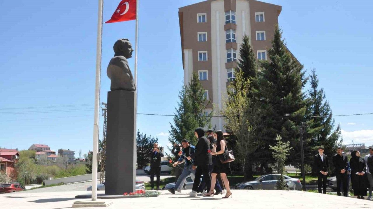 Azerbaycan’ın merhum lideri Haydar Aliyev’in 102. doğum günün de Kars’taki büstü önünde anıldı.