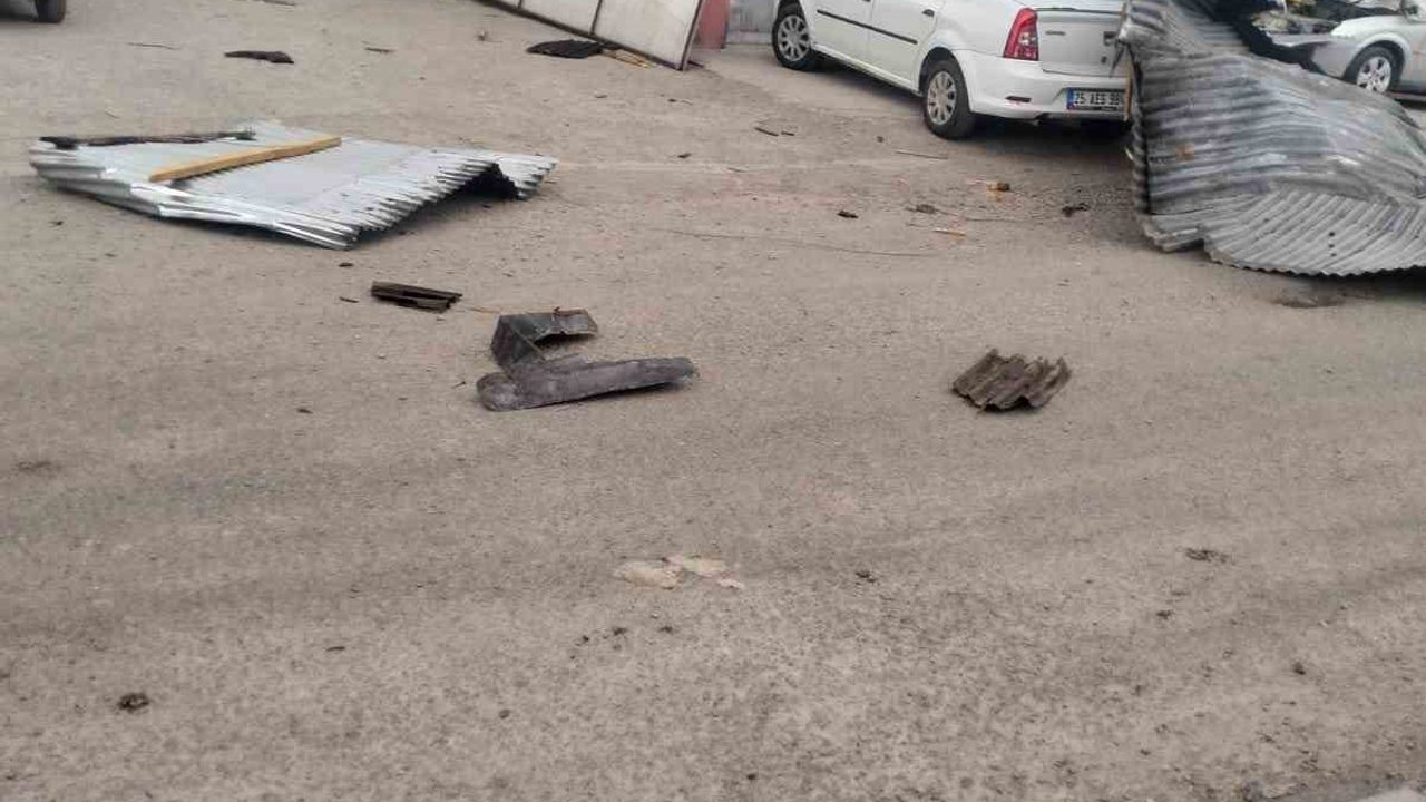 Kars’ta öğlen saatlerinde etkili olan şiddetli rüzgar nedeniyle Küçük Sanayi Sitesi’ndeki 2 iş yerinin çatısı yerinden koparak park halindeki aracın üzerine düştü. Otomobilde maddi hasar meydana gelirken, rüzgarın savurduğu çatı parçaları ise kaldırıldı.