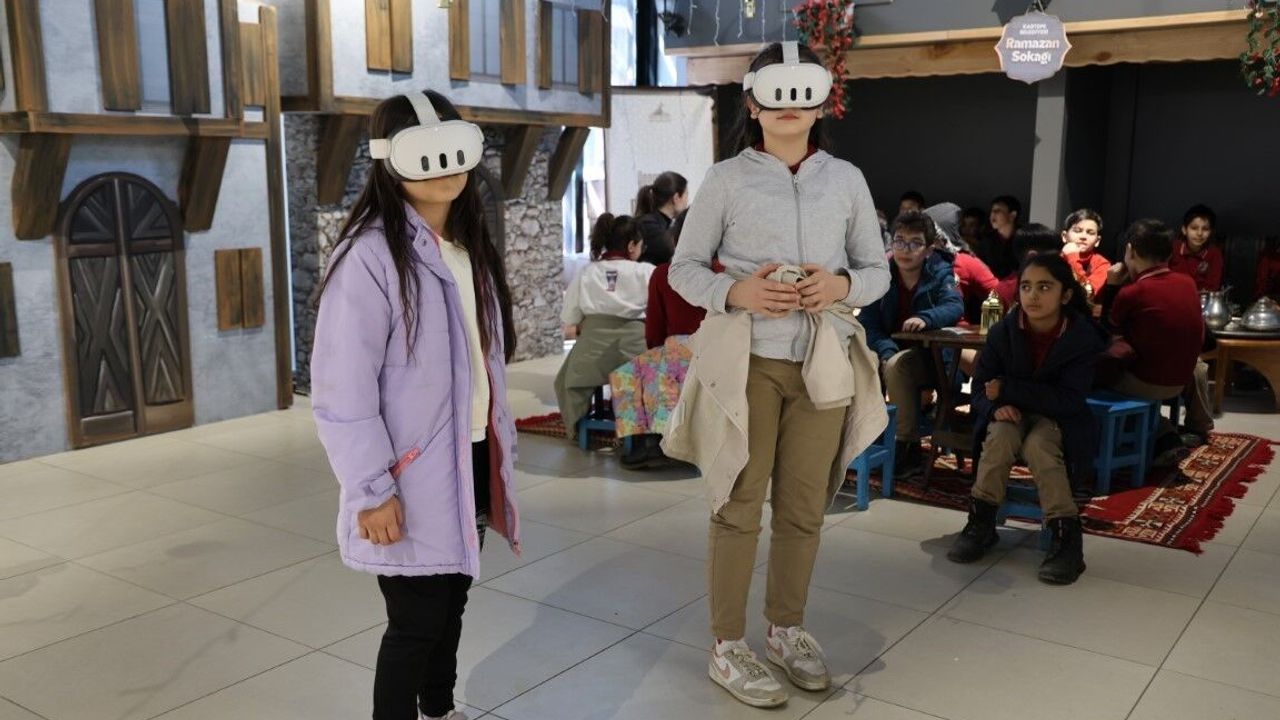 Kartepe'de kurulan Ramazan Sokağı'nı gezen öğrenciler, Karagöz ve Hacivat gösterisini izledi, sanal gerçeklik gözlüğüyle kutsal toprakları görme imkanı buldu.