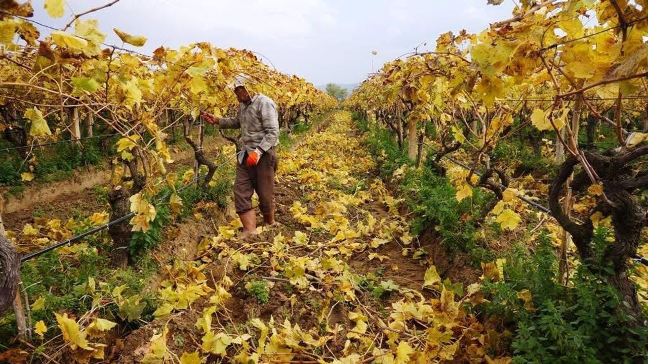 Örtü altında uzun süre kalan bağlarda yaprakların sararmasıyla oluşan görüntünün çalışmaya ayrı bir huzur kattığını belirten budama işçileri, 'Bu güzellik içinde çalışmak bizlere huzur veriyor. Bağ yapraklarının sapsarı ve kahverengiye bürünen hali görülmeye değer' ifadelerini kullandı.