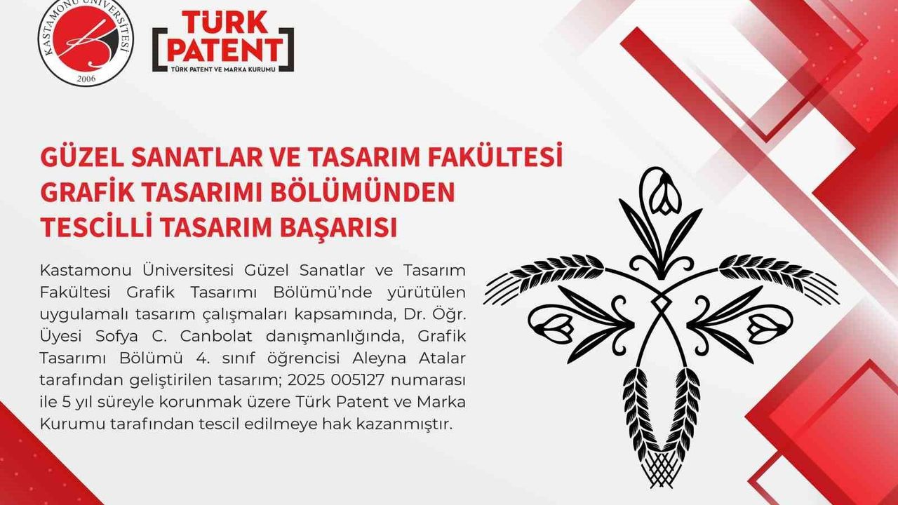 Kastamonu Üniversitesi Güzel Sanatlar ve Tasarım Fakültesi öğretim üyelerinden Dr. Öğr. Üyesi Sofya C. Canbolat'ın danışmanlığında 4. sınıf öğrencisi Aleyna Atalar tarafından hazırlanan tasarım, Türk Patent ve Marka Kurumu tarafından 5 yıl süreyle tescillendi. Çalışma, kültürel mirasın çağdaş grafik tasarım anlayışıyla yeniden yorumlanmasını amaçlıyor. Öğrencilerin yenilikçi üretimlerinin ulusal düzeyde resmî koruma kazanması, uygulamalı eğitimin niteliğini de ortaya koyuyor.
