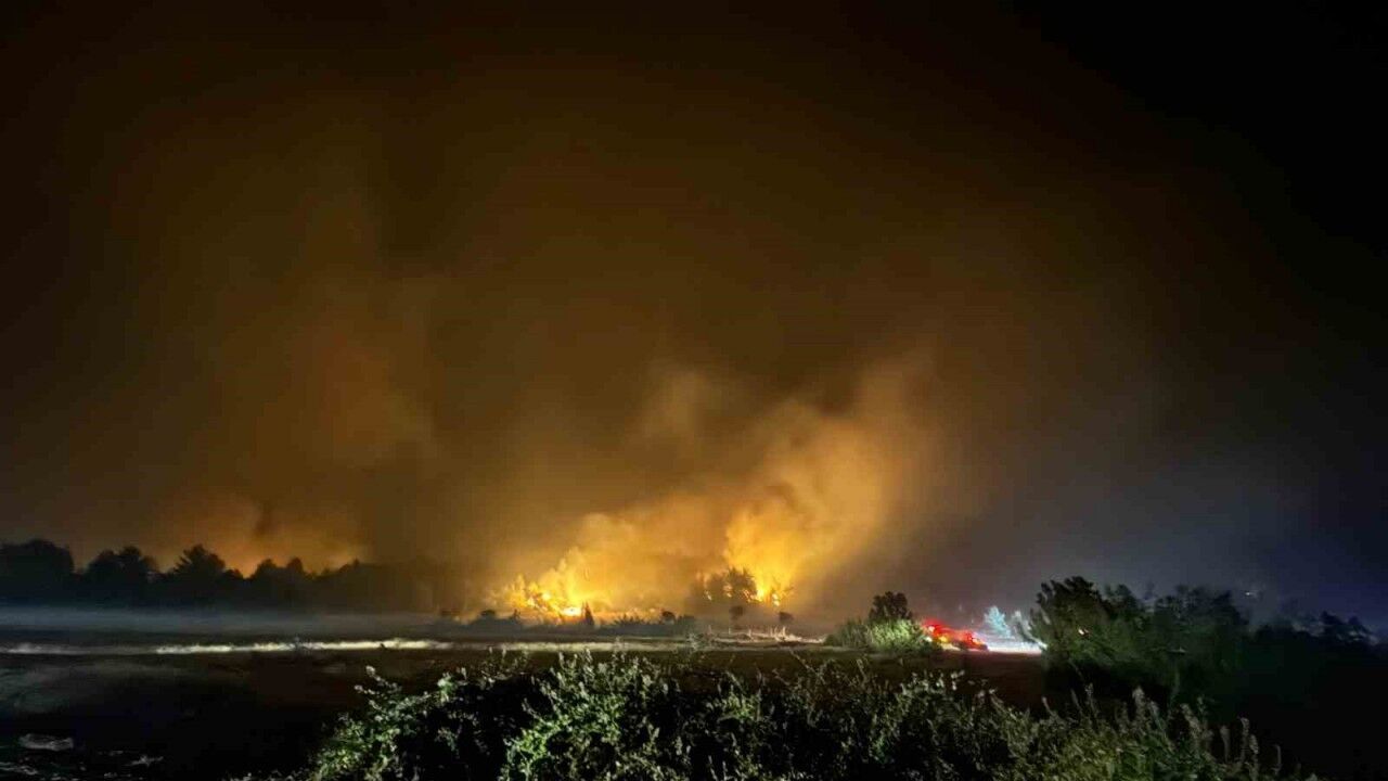 Geceyi aydınlatan alevlere müdahale devam ediyor.