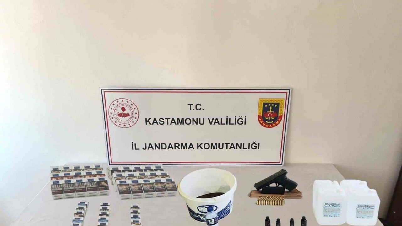 Edinilen bilgiye göre, Kastamonu İl Jandarma Komutanlığı ekiplerince kaçakçılıkla mücadele kapsamında, 102 paket kaçak sigara, 20 litre etil alkol, 5 litre sahte viski, 4 adet alkol aroma kiti, 51 adet tabanca fişeği ele geçirildi.