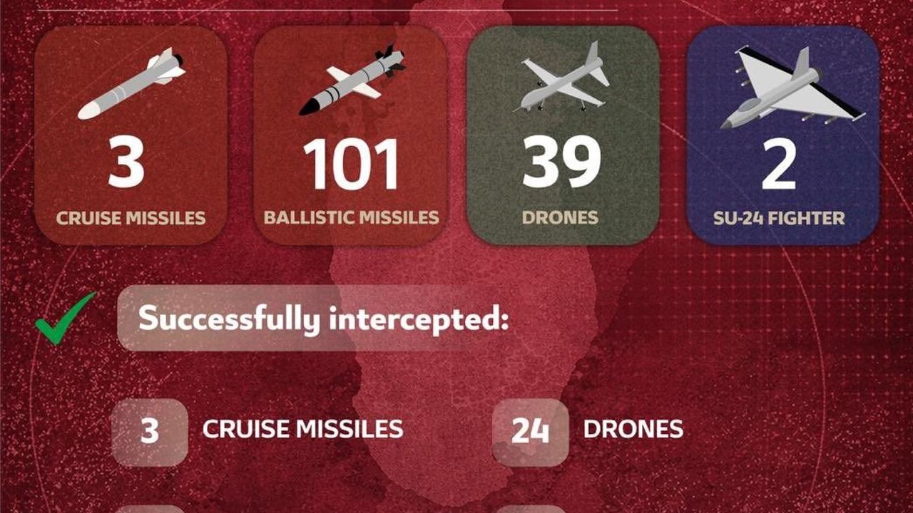 Katar Savunma Bakanlığı, 2 balistik füzenin daha engellendiğini duyurdu. Şimdiye dek 3 seyir füzesi, 98 balistik füze, 24 İHA ve 2 Su-24 savaş uçağının etkisiz hale getirildiği açıklandı.