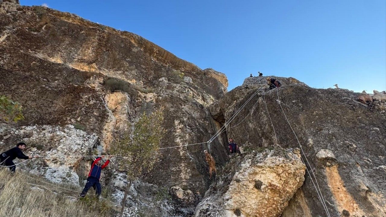 Diyarbakır’ın Eğil ilçesinde kayalıklarda mahsur kalan 25 keçi, itfaiye ekiplerince kurtarılarak sahibine teslim edildi.