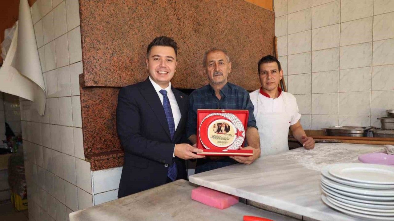 Aydın’ın Karacasu ilçesinde bu yıl 36’ncısı düzenlenen Afrodisias Kültür Sanat ve Tanıtım Festivali’nde 13 buçuk metrelik tahinli pide ile dikkatleri üzerine çeken Karacasulu pide ustası Halil İbrahim Köse’ye, Karacasu Kaymakamı Mehmet Gündoğdu plaket takdim etti.