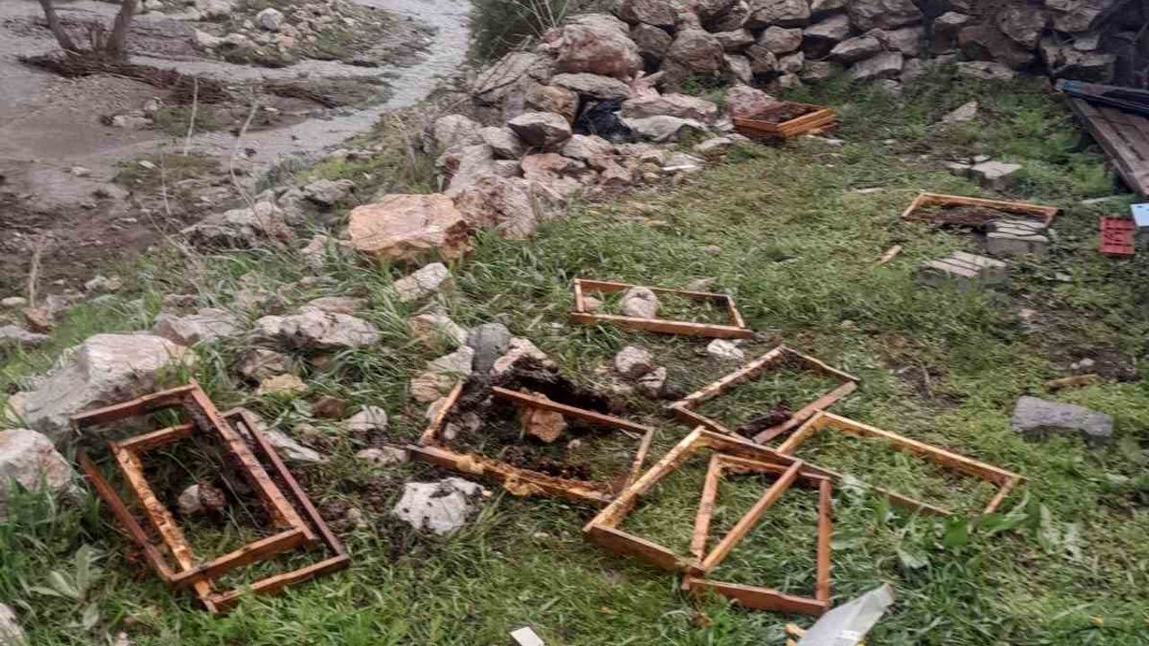 Kayseri’nin Develi ilçesinde ayılar, yaylada bulunan arı kovanlarına saldırdı.