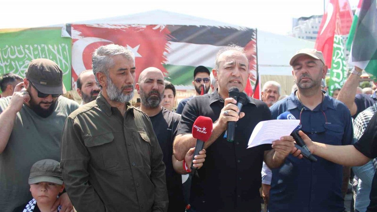Cumhuriyet Meydanı’nda düzenlenen basın açıklamasında konuşan Erdal Ergenç; "Bizler; yürekleri yangın yerine dönüş, bir asırdan fazladır parçalanan, tutuşturulan, enkaz altında kalan, araçlarda mahsur kalıp küçücük vücuduna onlarca mermi isabet eden, şarapnel parçaları ile uzuvlarını kaybeden, canlı canlı ateşe verilen canların acısını yaşayan milyonlarca insanın iç sesi olarak Küresel Gazze Yürüyüşü’ne katılmak üzere Refah Sınır Kapısı’na gidiyoruz. Biliyoruz ki ümmetin her bir ferdinin aklı ve kalbi dayanılmayacak kadar acılar çekiyor ve kabullenemiyoruz bu zulmü, soykırımı, katliamı. insanlık onurunun bu kadar yerlerde süründüğü başka bir tarih var mıdır bilmiyorum. Milyarlarca insanın içine bir grup Siyonist katil çetesi girmiş, şımarık, fütursuz ve ahlaksızca insanlık onurunu yerle bir etmeye çalışıyorlar. Kendilerine tehdit gördükleri her unsuru, askeri olsun ya da olmasın imha etmekten asla çekinmiyorlar. İnsanlık adına bu ahlaksızca yürütülen ve dünya insanlarının gözünün içine baka baka işlenen suçların elbette hesabını verecekler. Gelinen noktada artık hükümetlerin, devletlerin, dünya devlerinin bu şımarık katliamcı çeteye söyleyecek sözleri kalmamıştır. Politik olarak söylenecek her söz, her kınama, her nota verilmiş olup bu soykırımcı çeteye güç yetirememektedirler. Küresel Gazze Yürüyüşü bu çaresizliğe, bu ezilmişliğe ve bu suskunluğa bir çığlık olmak üzere Refah Sınır Kapısı’na kadar yürümek için kararlı ve inançlıdır. Bizler de sizlerin evlatları ve temsilcileri olarak bu Küresel Gazze Yürüyüşü’ne katılarak sesinizi Gazze’de, hayatta kalmayı başaran insanlara umut olarak ulaştırmak üzere Mısır’a hareket ediyoruz. Barışçıl, aynı zamanda hiçbir maddi güce ve kaba kuvvete başvurmadan tamamen sivil bir inisiyatif ile bu yolculuğa çıkıyoruz" dedi.
