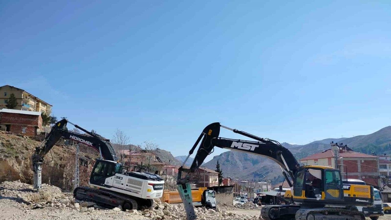 Keban’da meteoroloji istasyonu ve lojmanın bulunduğu alan daha önce yıkılmıştı. Molozların bırakıldığı bölgede belediye ekipleri tarafından çalışma başlatıldı. İnşaat atıkları, iş makineleri yardımı ile kamyonlara alınarak ilçe dışına çıkarıldı.