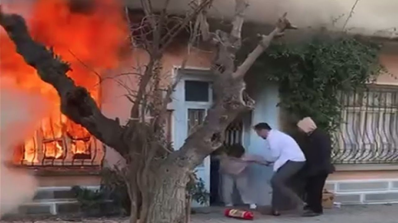 İzmir'in Seferihisar ilçesinde tek katlı kerpiç evde çıkan yangında can pazarı yaşandı. Evdeki kedisini kurtarmak için alevlerin arasına dalan yaşlı kadın, mahalle sakinleri tarafından güçlükle dışarı çıkartılarak yanmaktan son anda kurtarıldı.