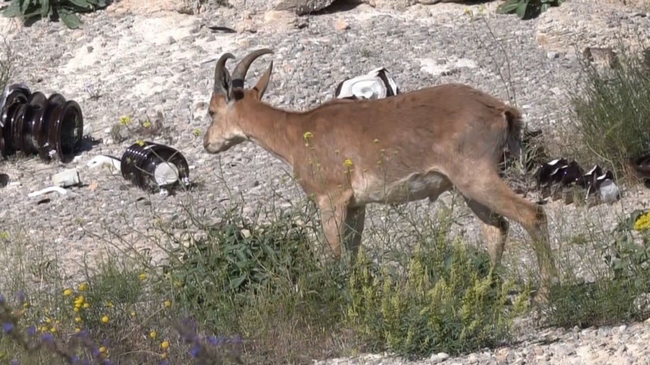 Erzincan’ın Kemaliye ilçesinde şantiye sahasına giren yaban keçisi görüntülendi.