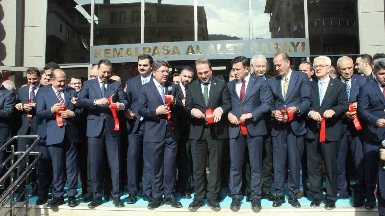 Adalet Bakanı Yılmaz Tunç, İzmir programı kapsamında Kemalpaşa Adalet Sarayı açılış ve Aliağa Adalet Sarayı temel atma törenine katıldı. Kemalpaşa’da düzenlenen törene Bakan Tunç’un yanı sıra AK Parti Genel Sekreteri ve İzmir Milletvekili Eyyüp Kadir İnan, AK Parti İzmir Milletvekilleri Mahmut Atilla Kaya, Yaşar Kırkpınar AK Parti MKYK Üyesi Hamza Dağ, MHP İzmir Milletvekili Tamer Osmanağaoğlu, İzmir Cumhuriyet Başsavcısı Ali Yeldan ile protokol ve partililer katıldı. Törende açıklamalarda bulunan Bakan Tunç, "Bugün sizlerle beraber Kemalpaşa Adalet binamızın açılışını, inşallah gerçekleştireceğiz. İzmir’e farklı vesilelerle defalarca geldik; bakanlığım süresi içerisinde. İzmir, Ege’nin incisi. İzmir, yaklaşık 30 civarında ilçesi olan ve Türkiye’nin üçüncü büyük şehri; önemli bir şehir. Ege’nin incisi; her bir yanı tarih kokan, medeniyetlere beşiklik yapan, ülkemizin en değerli nadide köşelerinden bir yer. O nedenle İzmir’e ne yapsak azdır. Yapmaya çalışıyoruz. 23 yıllık iktidarımızda Cumhurbaşkanımız Sayın Recep Tayyip Erdoğan, İzmir’e çok büyük değer verdi. Milletvekillerimizle beraber, genel başkan yardımcılarımızla beraber şu anda da hala devam ediyoruz. Yollarıyla, otobanlarıyla, limanlarıyla, şehir hastaneleriyle, adliye binalarıyla her şeyiyle, altyapısıyla, üst yapısıyla İzmir’e önem vermeye devam ediyoruz" İfadelerini kullandı.